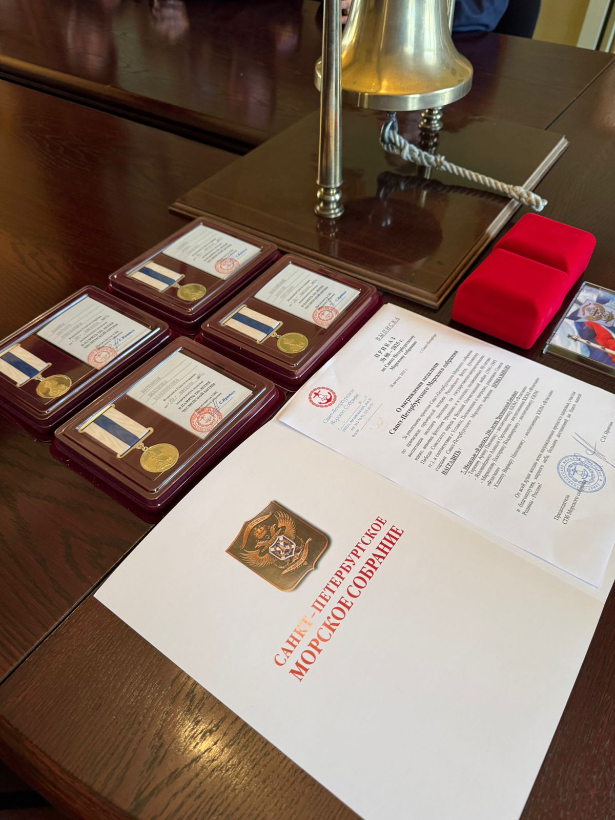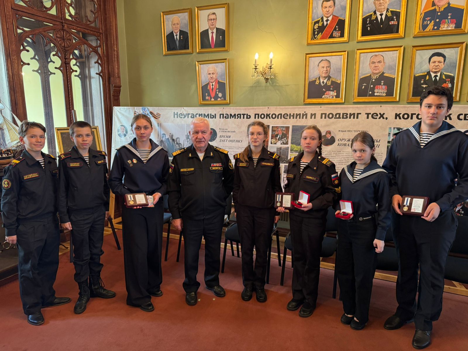 Особо отличившиеся подростки КЮМ получили от Морского Собрания памятные медали «В память 250-летия Чесменской битвы»:
