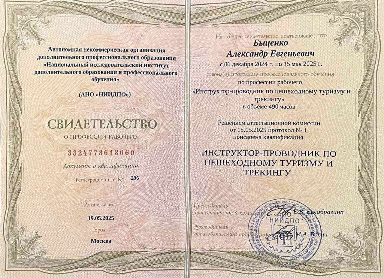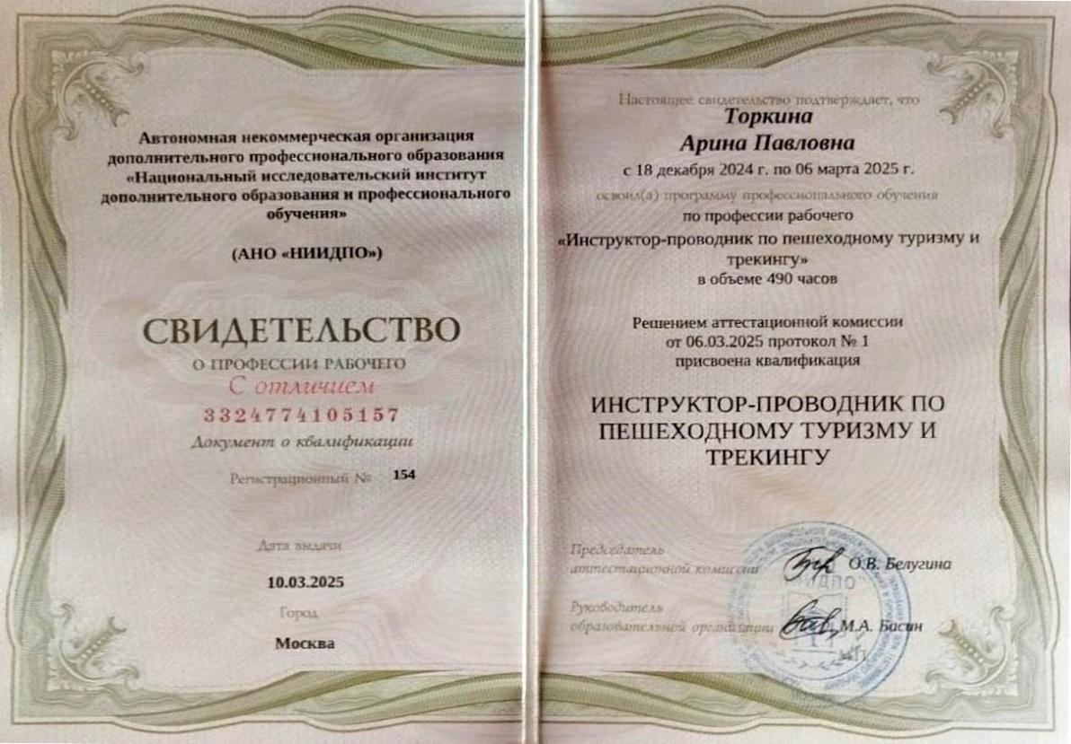 Трое получили квалификацию «Инструктор-проводник по пешеходному туризму и трекингу»: Быценко Александр, Торкина Арина, Лилле Элина.